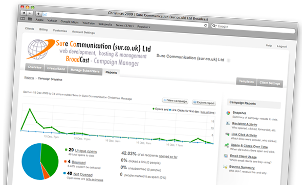 We design, you add your content and manage your subscribers. Send at your leisure and then track the success of your campaigns using Broadcast’s built in reporting facilities. Sign up; we do the rest, easy!